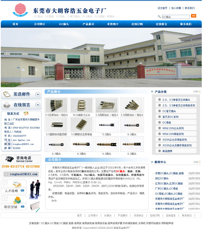 東莞市大朗容浩五金電子廠(一般納稅人企業(yè))成立于2001年9月,有十余年之開發(fā)使用經(jīng)驗(yàn),是專業(yè)設(shè)計(jì)制造各類DC插頭插座的公司,主要生產(chǎn)各類DC插頭、插座、音插、2·5系列、3·5系列、手機(jī)插頭、Mp3插頭、免提耳機(jī)插頭、充電器插頭、轉(zhuǎn)接母座等周邊產(chǎn)品及精密車床制品加工。所有DC插頭都能通過(guò)歐盟的環(huán)保標(biāo)準(zhǔn)ROHS(Cd、Pb、Hg、Cr+VI、PBBs、PBDEs);鹵素(F.Cl.Br.1);