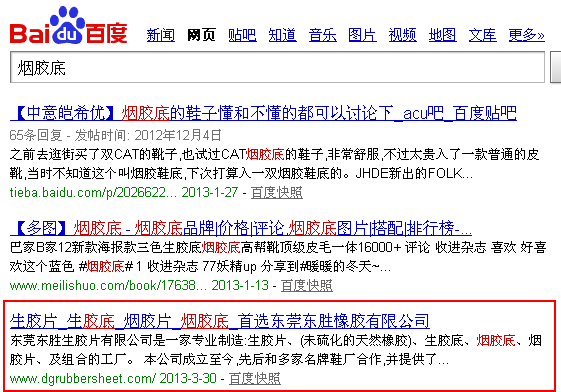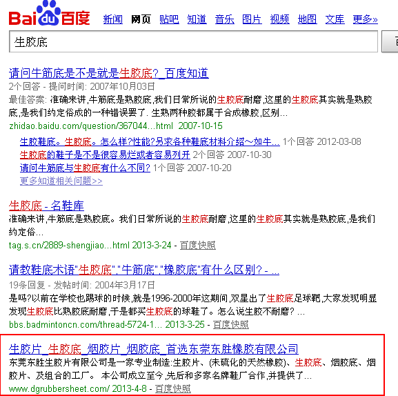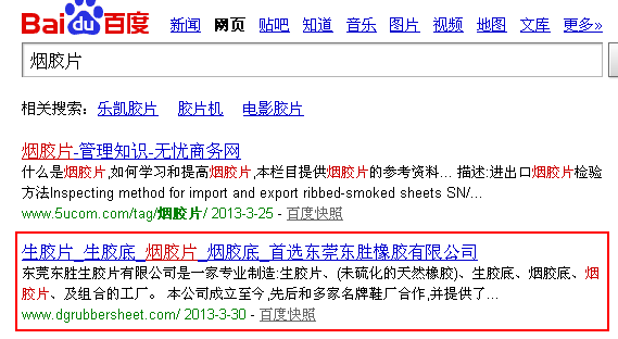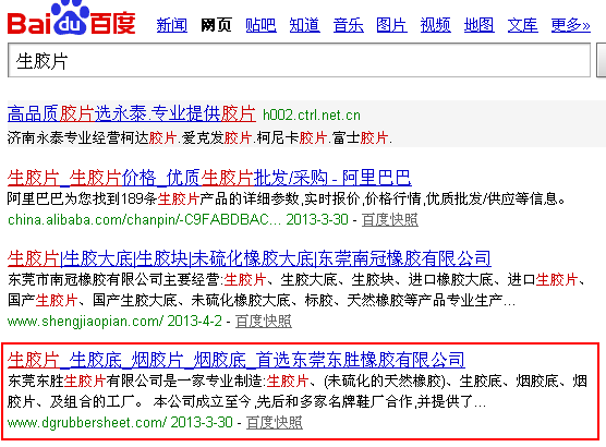 東莞東勝橡膠有限公司多個關(guān)鍵詞在百度首頁