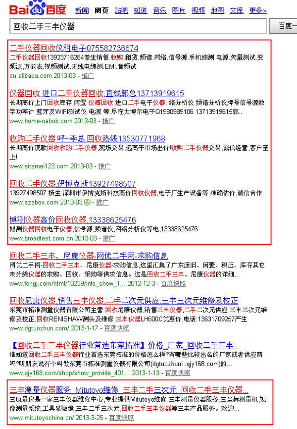 回收二手三豐儀器 百度首頁,前面很多做推廣的