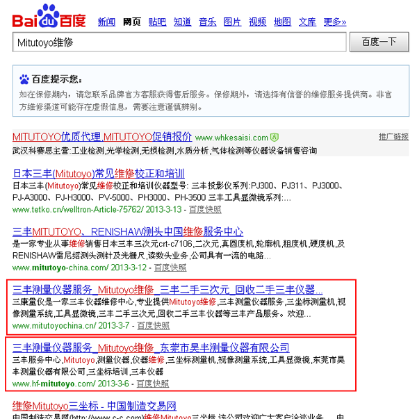 Mitutoyo維修 百度第四,第五也是我們的客戶